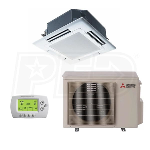 Mitsubishi - 12k BTU Cooling + Heating - M-Series Ceiling Cassette Air Conditioning System - 15.4 SEER