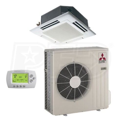 Mitsubishi - 15k BTU Cooling + Heating - M-Series Ceiling Cassette Air Conditioning System - 16.0 SEER