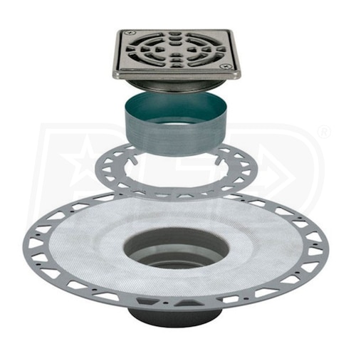 Schluter KERDI-DRAIN - PVC Flange - Drain Kit - 2" Drain Outlet - 4" Square Grate - Stainless Steel