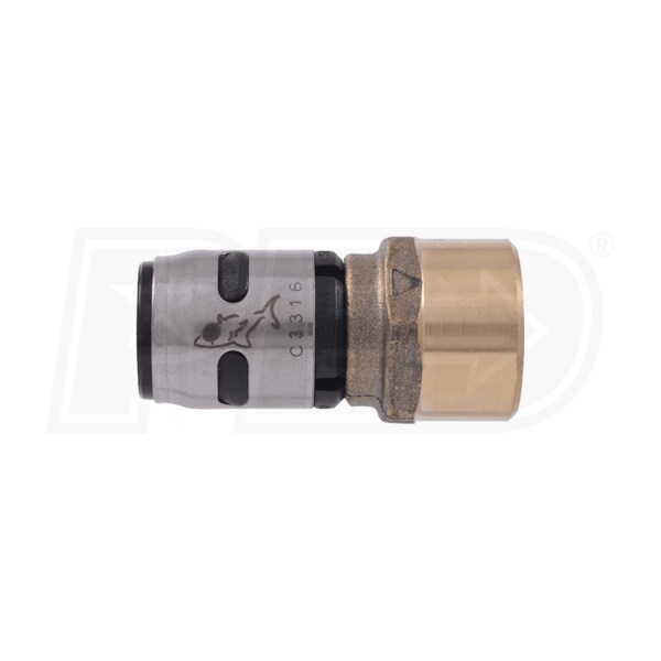 The SharkBite EvoPEX Female Adapter is a PEX-only push fitting used to permanently transition between PEX pipe and an MNPT thread. This push-to-connect PEX fitting allows for faster installation compared to traditional PEX rough-in plumbing methods. Requires no special tools, crimp/clamp/PEX rings, increasing productivity. Can be rotated after connected, and is ideal for working in tight spaces. A green visual indicator lets you know when PEX tubing is inserted to the proper depth.