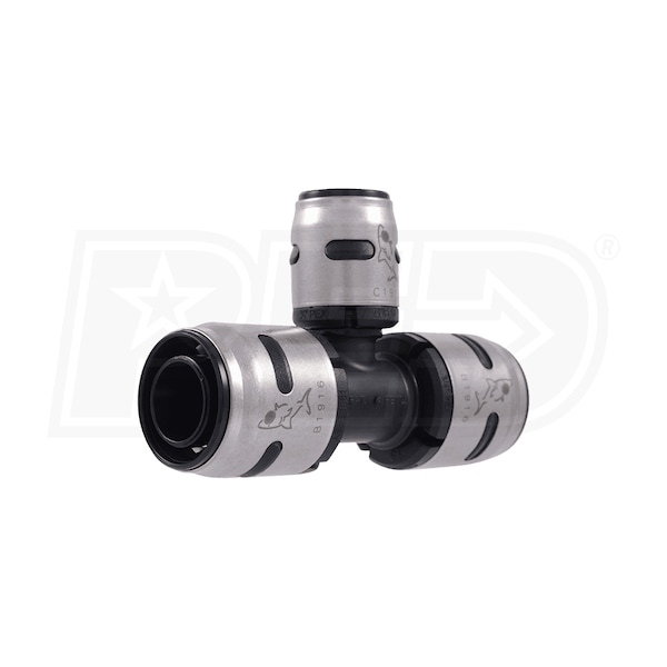 The SharkBite EvoPEX Reducing Tee is a PEX-only fitting used to permanently connect different-sized PEX pipe together. This push-to-connect PEX fitting allows for faster installation compared to traditional PEX rough-in plumbing methods. Requires no special tools, crimp/clamp/PEX rings, increasing productivity. Can be rotated after connected, and is ideal for working in tight spaces. A green visual indicator lets you know when PEX tubing is inserted to the proper depth.