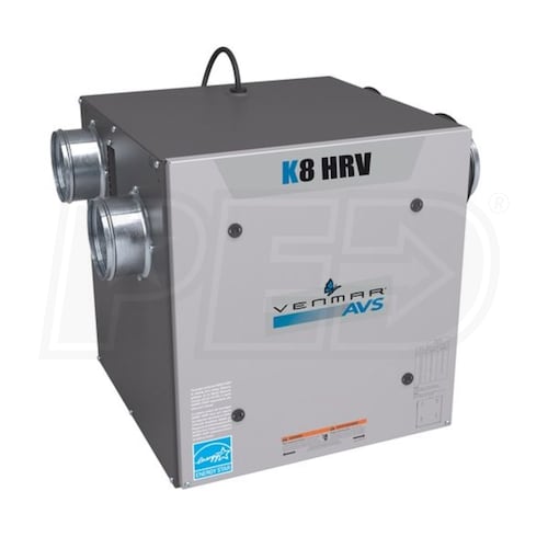 Venmar K8 - 78 Max CFM - Heat Recovery Ventilator (HRV) - Side Ports - 4" Connection - Recirculation Defrost Type