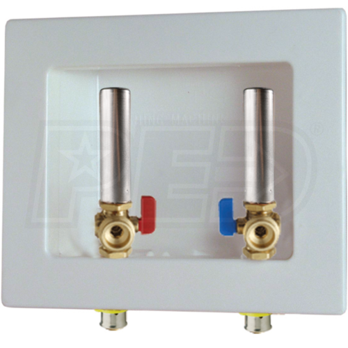 This is a Viega PEX press outlet box for use with washing machines. It features 1/4 turn brass valves, color coded handles, water hammer arrestor, and is designed specifically for use with washing machines. With over 100 years of experience, Viega has been constantly changing and innovating the pipe-joining industry. Viega uses only the highest quality materials in their products, while offering solutions to reduce project cost and provide top end reliability.