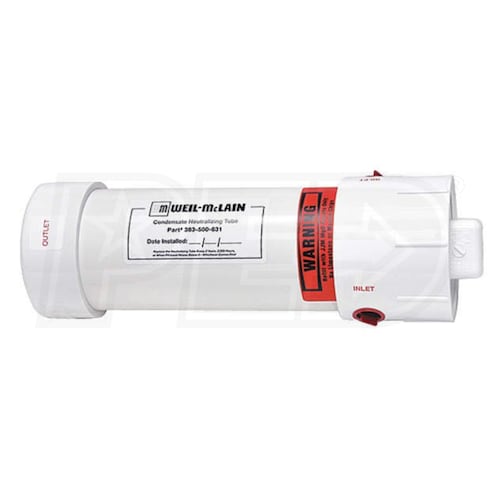 This filter kit neutralizes the pH of condensate produced by a Weil-McLain condensing hot water boiler.