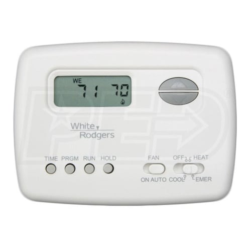 We offer the best-selling digital thermostat by combining a single stage, multi-stage and heat pump into one universal thermostat. And better yet we've enhanced it with styling and features specially designed for all systems. It offers more control, more convenience and more value than the competition. And it's backed with the reputation of White-Rodgers - pioneers in home comfort since 1937. More Accuracy and Control. If you're in the process of upgrading a multi-stage, heat pump or single stage system, don't forget the "brain" for your new system, your thermostat. Our White-Rodgers 70 Series can maintain a set temperature to within one degree. Plus, there's a permanent memory that saves all programs and settings during a power loss. Comfort and Convenience with Versatility. The programmable models deliver perfect comfort, as they automatically change to the temperature you selected for wake-up, during the day, evening hours and while you sleep. You can also configure them with minimum and maximum temperature range for cooling or heating. The lighted display makes for clearer low-light viewing. Maximum Energy Savings. Program heating and cooling times to cut energy use, not comfort. You can save up to 33% in energy costs, depending on your home's location, climate and program selections. Now you can have it all, energy savings, with comfort and convenience! See the back to find out how this best-seller gives you more of what you want in a universal thermostat. No Other Thermostat Series Offers More Value for the Money. Covers Wall Marks Left by Most Mechanical Thermostats Without the Need for an Extra Wall Plate.