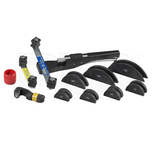 The Yellow Jacket Rachet Hand Bender Kit includes everything you need for simple soft copper and soft aluminum pipe bending. The hand bender features a trouble-free rachet mechanism with the ability for quick change bending mandrels and shoes. The kit includes all items required to bend from 1/4" to 7/8" tubing.